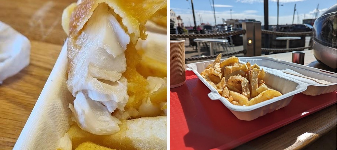 Excellent fish and chips. Fish lovely white and flakey, batter nice and chips where tasty. Couldn't believe the size of the portions when ordering large. Not the cheapest but like most things you get what you pay for. The service was good and we didn't have to wait long for our order. Highly recommend!!