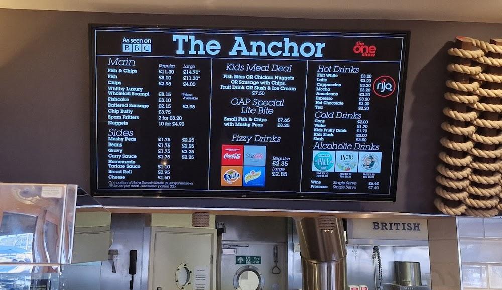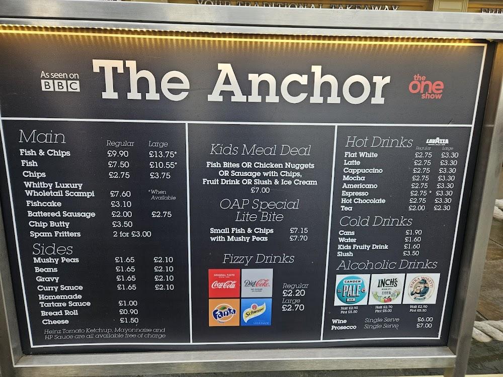 Located at 37 Sandside, Scarborough YO11 1PG, The Anchor Fish & Chips is a beloved local gem, known for its commitment to quality and freshness. This spot is easily accessible, with wheelchair-accessible entrances and seating available. It’s an ideal place for families, tourists, and even those seeking a quiet meal by themselves. The restaurant captures the heart of seaside dining, with nautical decor that complements its coastal location. Whether you're parking in the nearby paid lots or taking a leisurely stroll from the beach, visiting The Anchor promises an enjoyable experience. With reservations accepted and efficient dining options—including dine-in, takeaway, and delivery—everyone can find a way to enjoy their food from this charming establishment. The interior combines comfort and cleanliness, with a lovely atmosphere that invites you to sit back and savor your meal.